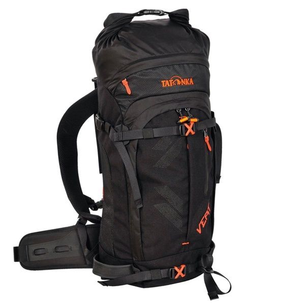Альпинистский рюкзак Tatonka Vert EXP из прочного материала Cordura 700 Den. Система замка-скрутки разработана специально для лыжных путешествий. Лыжи можно крепить к передней или боковой части рюкзака, рюкзак имеет съемный поясной ремень, и совместим с питьевой системой. Вставные карманы для лавинного зонда, лопаты, аптечки доступны снаружи, и могут также отрываться легко в перчатках. В рюкзаке имеется водонепроницаемый внутренний мешок, который можно вынуть. Поэтому, в случае необходимости, можно оставить мокрый рюкзак за дверью дома, вынув все нужное.