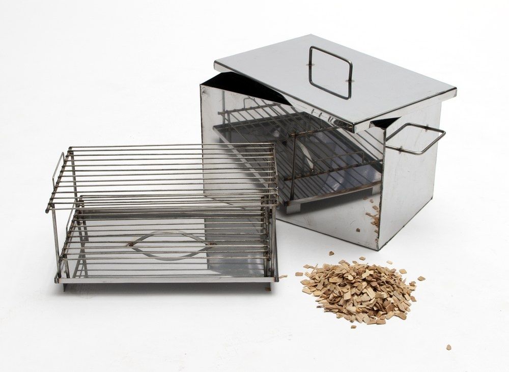 Коптильня из нержавейки предназначена для горячего копчения рыбы, курицы, мяса, сала, ребрышек, и т.п. на открытом воздухе. Ее удобно взять с собой в поход или на рыбалку. Изготовлена из пищевой нержавеющей стали. Толщина стенки — 1,5 мм обеспечивает долгий срок службы коптильни, более 10 лет (при частом использовании). В комплект входит сумка для переноски, она окажется полезной и при транспортировке коптильни в автомобиле после использования, не позволив копоти испачкать багажник и другие вещи. Сумка легко стирается в стиральной машине. Две решетки для продуктов имеют специальные ручки, которые позволят легко вынуть готовые продукты из горячей коптильни и не обжечь руки. Поддон собирает стекающий с продуктов жир дабы он не подгорал и не ухудшал аромат копченостей. Все элементы выполнены из пищевой нержавеющей стали, которую легко чистить и мыть, она не подвергается коррозии. В комплект входит упаковка ольховой щепы, так что сразу после покупки можно опробовать коптильню для рыбы и мяса на природе. Купите в нашем интернет-магазине Turstandart.Ru Коптильня из нержавеющей стали (1,5 мм) без гидрозатвора 500*300*250 недорого с доставкой. С условиями доставки товара Коптильня из нержавеющей стали (1,5 мм) без гидрозатвора 500*300*250 вы можете ознакомиться в разделе Доставка. Также наши менеджеры ответят на все ваши вопросы о |