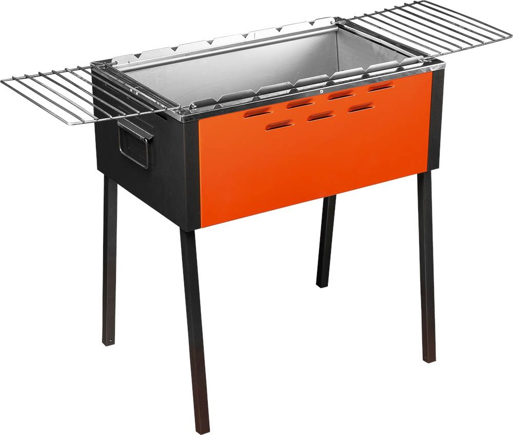 Мангал оснащен двойным дном, верхнее - с небольшими отверстиями, которое обеспечивает доступ воздуха. Это помогает хорошо поддерживать жар, не требуя большого количества топлива. Кроме того, мангал оборудован металлическими полочками и высокими ножками для удобства использования.