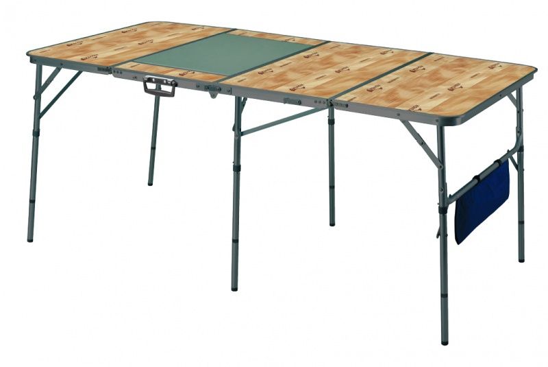 Складной 4-х секционный кемпинговый стол с опускающейся платформой под газовую плиту или BBQ - модуль. Высокопрочный алюминиевый профиль холодного анодирования. конструкция slim (утонченный). Регулировка ножек по высоте, и их фиксация. Столешница из высококачественного пластика под дерево. Чехол в комплект не входит и приобретается дополнительно. Размер (в разлож. виде) 160x80x70 см Макс. нагрузка 50 кг Комплектация - стол.