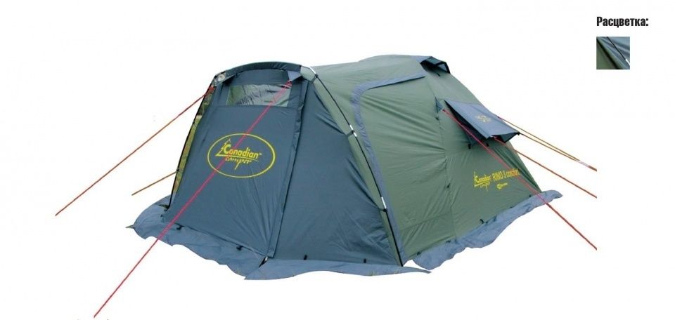 Классическая туристическая палатка. Одна из самых комфортных и универсальных палаток Canadian Camper. Палатка имеет увеличенный тамбур с ломанной П-образной дугой и прозрачным окном. Для увеличения сезонных сроков эксплуатации палаток добавлены ветрозащитные юбки по всему периметру изделия, которые можно зафиксировать в подвернутом состоянии. Дополнительные вентиляционные окна в боковых стенах позволяют эксплуатировать палатку в условиях жаркого и очень жаркого климата. Характеристики