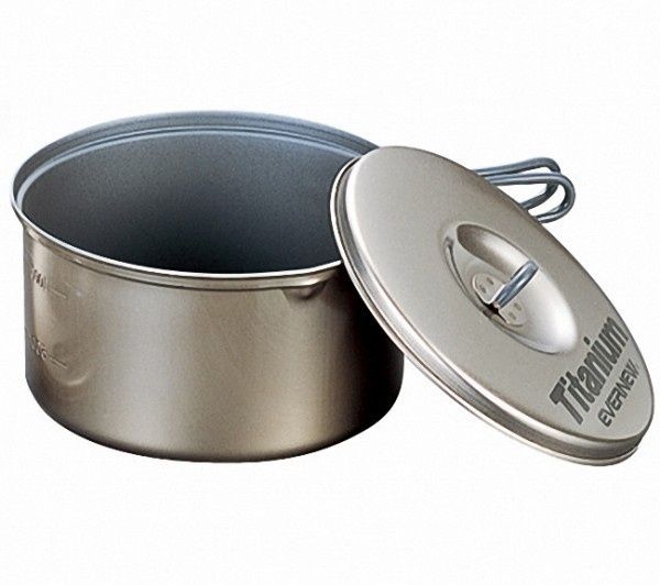 Широкая кастрюля 1,3 л., серии Non-Stick, из титана, с крышкой. Кастрюля покрыта силиконовым покрытием снаружи и керамическим изнутри. Складные ручки покрыты огнеупорным силиконом. Кастрюля может составлять компактные наборы с многими другими предметами Evernew.